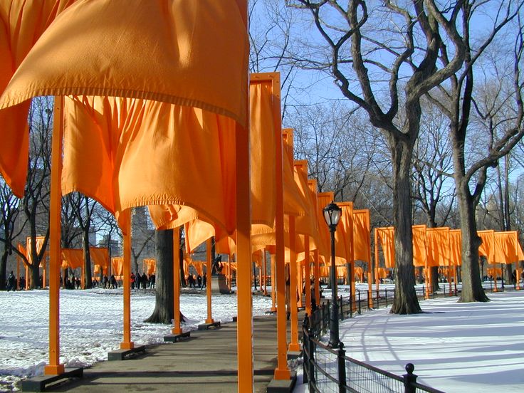 What struck me was how the design seemed to defeat the concept. One imagines a long series of gates as a spectacle of perspective. In The Gates, however, the saffron sheets were so low that the only perspective was tunnel-like, even in those rare places where the walkways ran straight. Moreover, the saffron sheets were a medium that cried out for a message. It was hard to shake the impression that the whole thing was a sort of draft, and the text and images would be added later.