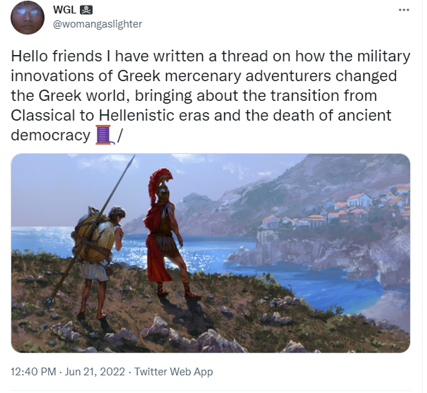 A great Twitter thread on how innovations in military doctrine amongst the Greeks changed the world.