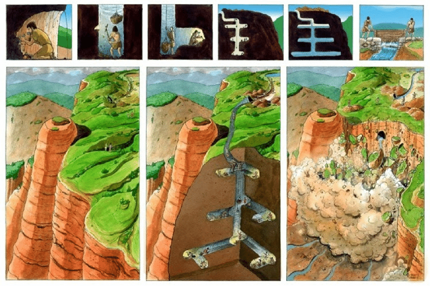 The Roman mining technique Ruina Montium is an impressive bit of applied engineering.
