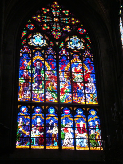 After Ben finished we went and saw the Stephansdom, which is the actual Cathedral of Vienna. It was cool because it was one of the oldest churches in the city, but it was very crowded. It also wasn’t very pretty inside, though there was some beautiful stained glass and a really neat altar. The coolest part was the crypt tour we took. You could look in rooms that were full, floor to ceiling, of bones because they would move all the bones in there after a certain amount of time to make more room. There was also a plague pit, which is rare to see inside a city for obvious reasons. The guide said that they think that it was probably where they put the nobility that died of the plague. There was also one of the crypts where they the Hapsburgs are buried. They were only buried there up to the 13th century and after that the only kept their intestines here, which is weird.