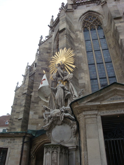 A statue on the exterior of Stephansdom