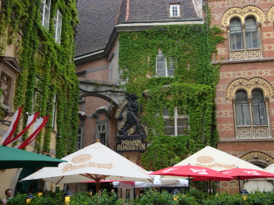 We had dinner with Gore people and doctors at the Griechenbeisl. There’s a bagpiper on the sign because legend has it that a bagpiper was drunk one night and passed out. Thinking he had died of the plague, they put him in a plague pit. He attracted attention the next morning by playing his bagpipe. The food was good, and I got to try Eiswein, which is a dessert wine made by leaving the grapes on the vine through the first frost. There was also a guy playing the accordion during dinner.