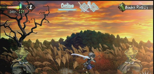 The story is simple too. A swordsman who lusts for power finds himself trapped in a young girl's body. A ninja is hunted by his clan. Mayhem ensues. It was good enough to keep me entertained. I played through to get all six endings for this game, although I was a little weary of it by the end. I found Momohime's story more interesting than Kisuke's, perhaps because I enjoyed seeing grizzled Jinkuro slowly grow into a better man because of his exposure to Momohime's startling innocence.