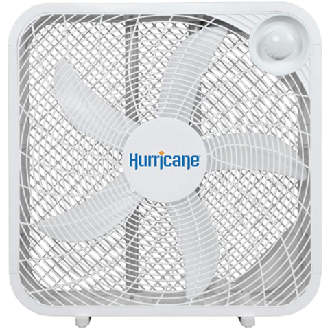 I built two boxes to start. I used two different brands of duct tape and two different brands of fan. I started with a Hurricane 20” box fan, and 3M Multi-Use Duct Tape #2960 [Amazon links]. At first, I was a bit annoyed that the Hurricane fan has its knob on the front, as that requires extra cuts in the fan shroud. But I discovered that the Hurricane fan moves more air at a lower setting, meaning less noise, during testing.