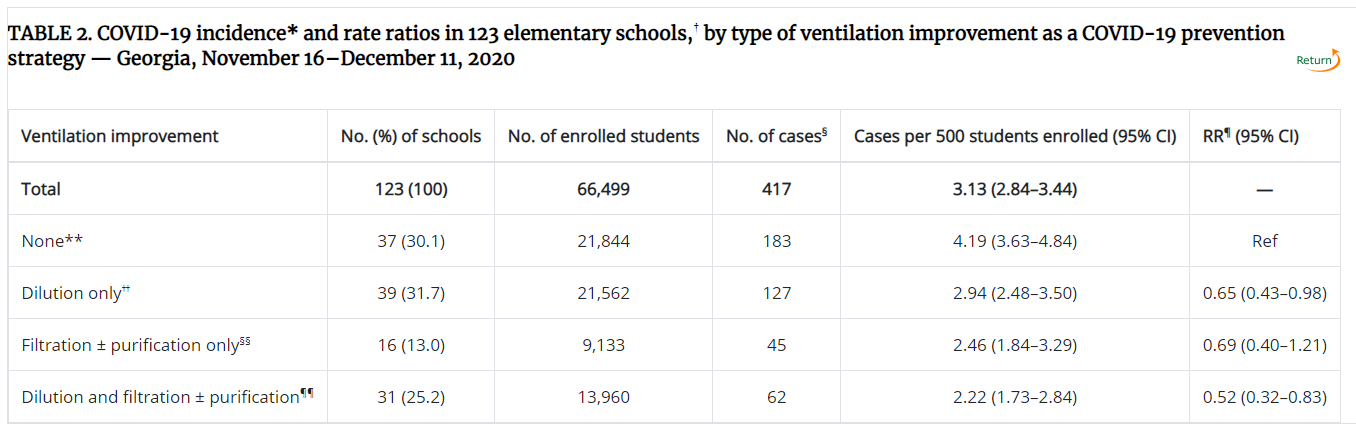 As theory and observation reach similar results here, I feel pretty good about this. Our school is swapping the masking policy for air filtration, masking optional, and with the availability of COVID vaccines for children ages 5-11, we should see a net increase in mitigation for the school, but with considerably less rancor.