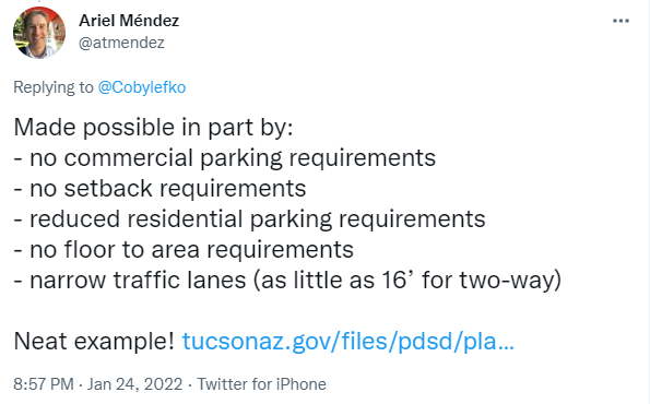 There are lots of options the market doesn’t provide, because there isn’t any valid design space within current zoning. In order to offer those options, you need to blow up the zoning code. Which is what Tucson did.