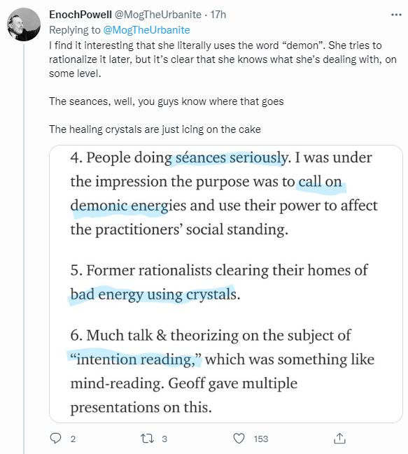 Thus, we shouldn’t be surprised that the revival of these practices came to a bad end as well. Probably we are lucky that it hasn’t been worse. Perhaps the one saving grace of the Leverage group is that they were trying to save the world, although it is a well-known tendency of millennial cults to try to save the world by ending it.