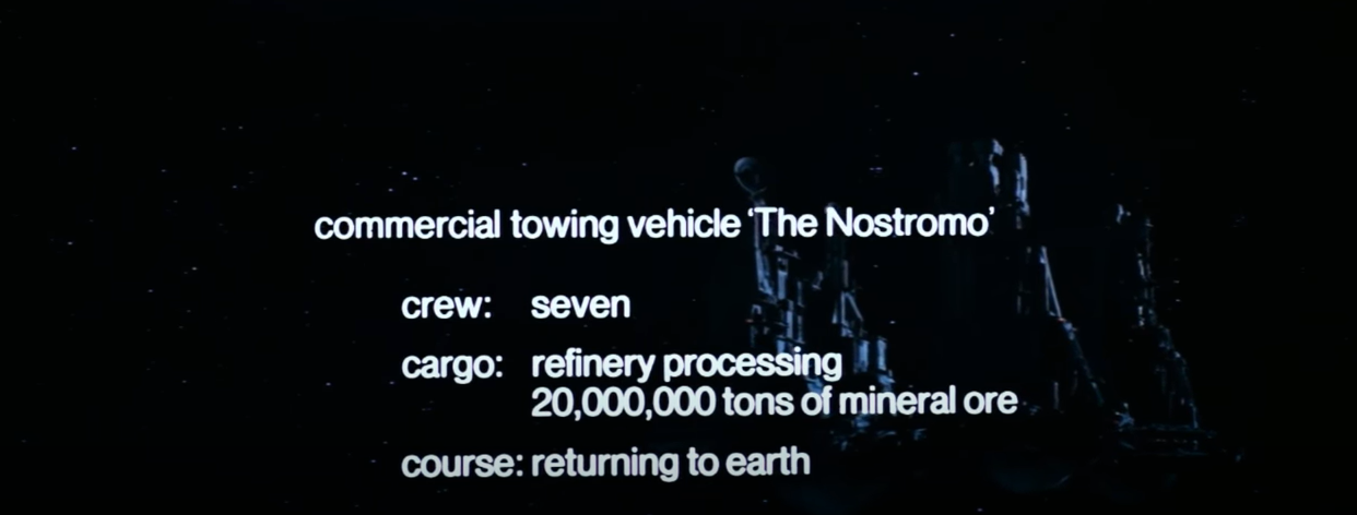 Other times, either a traditional spoken narrative or more commonly a written one was used to set the scene. Visuals can communicate many things, but even so simple a thing as the identity of the Nostromo and its crew is more effectively done via narration.