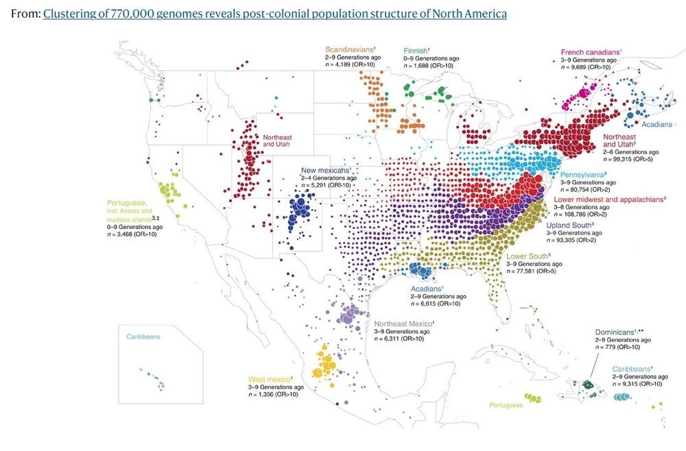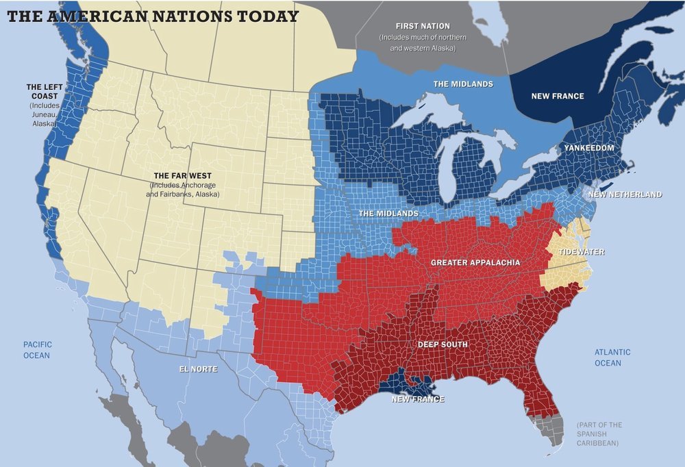 In a similar way, I can’t stop thinking about how Colin Woodward’s layer-cake thesis of the settling of America was so spectacularly confirmed by genetic evidence.