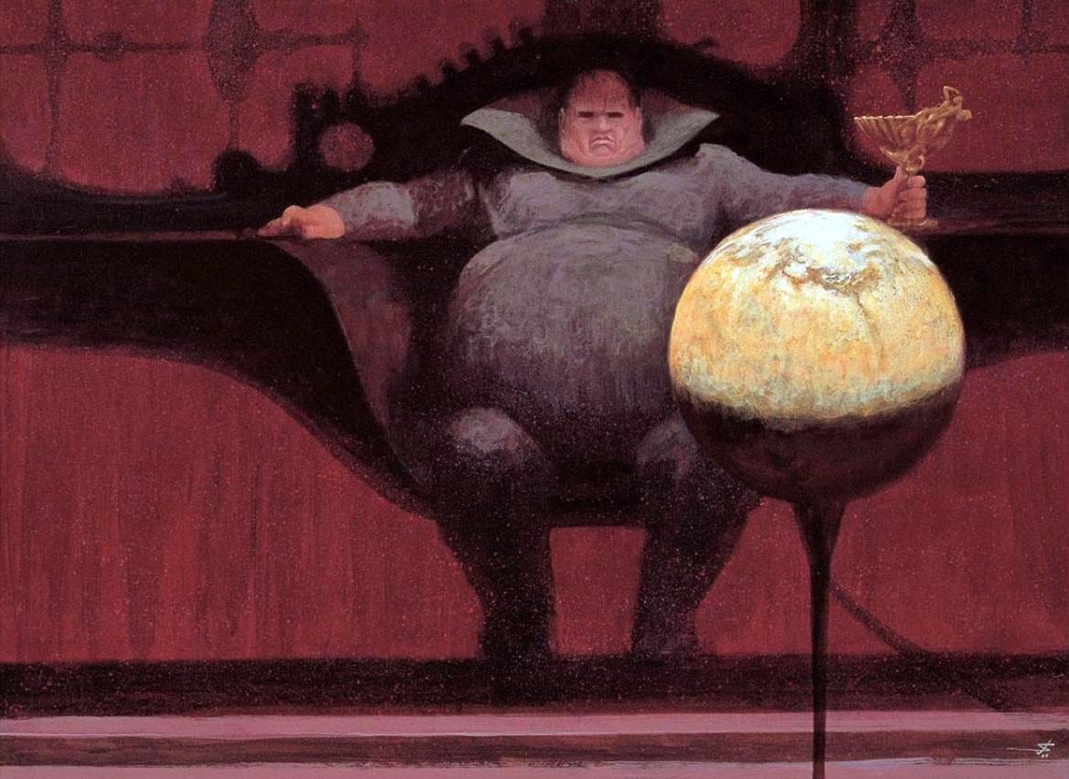 I was aghast. Never before had I seen such a hideous monstrosity of a man. His enormous, bloated body was dressed in colorful robes of shimmering silk, hung with bracelets, necklaces, and amulets. The thick, pudgy fingers were heavily ringed, and Vorta wore a scabbardless star-lance which gleamed like the sun itself, the haft studded with gems.