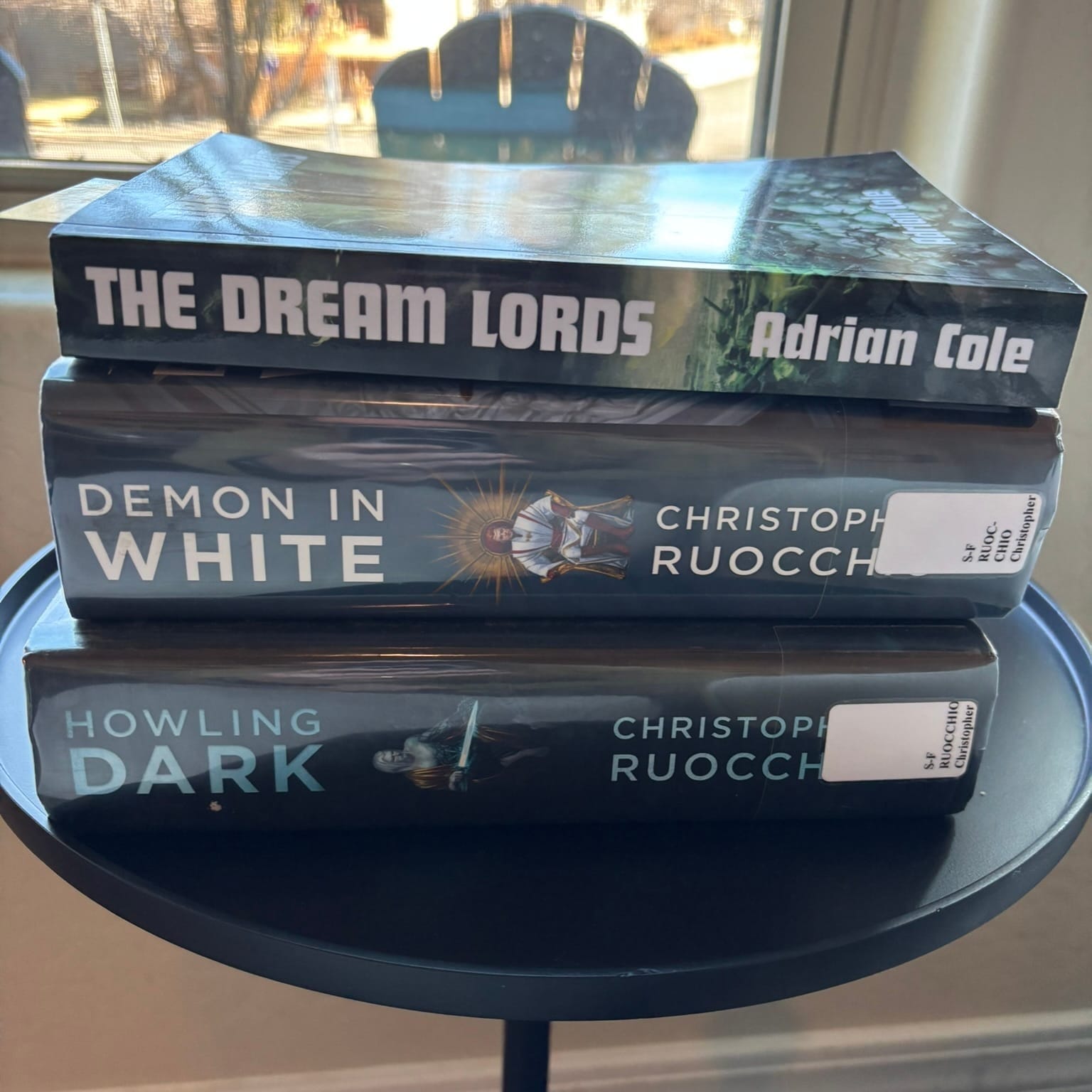 You can see this difference in style without even opening the books. I took a picture of the 50th anniversary edition of The Dream Lords on top of two of Ruocchio's Sun Eater series. All three volumes of Cole's story take up less space than one of the planned seven Sun Eater volumes.
