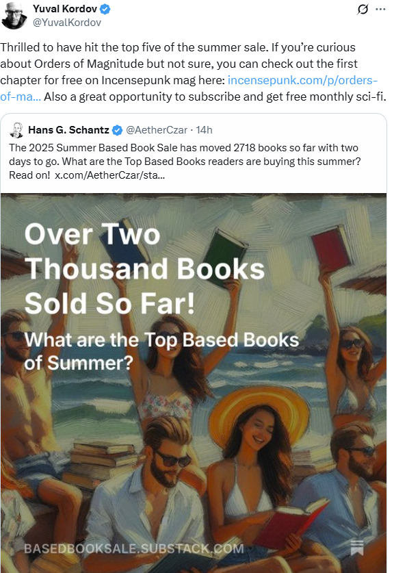 I've put up both of John J. Reilly's books that I publish in the Summer 2025 Based Books Sale. I've participated in the sale before, as there are a ton of authors I like who also participate, and I usually sell a few copies of John's books every time.