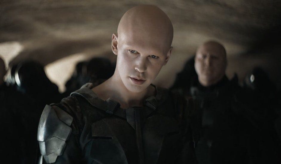 There are subtler things too, many of which are specific to the film-maker's craft rather than the writer's. When my wife and I saw the movie, she pointed out to me that Austin Butler's Feyd Rautha had soft eyes, which is not the typical way that a sociopath is portrayed in film. Timothée Chalamet on the other hand, had absolutely terrifying eyes when he stopped being Paul Atreides and became Paul Muad'dib.