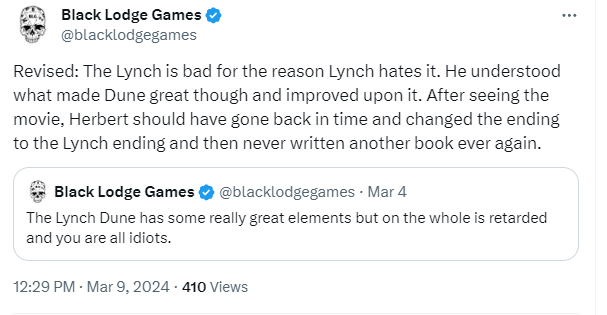 Given how relatively important Frank's themes are to Dune and its critical reception, I am okay with Villeneuve's changes. Especially because while I think you can justifiably see Chani's new characterization as a typical manifestation of current-year mainstream cultural attitudes, Villeneuve's Dune: Part Two retains much of Frank Herbert's most hard-hitting bits of social commentary, including things which are most unwelcome in the current year.