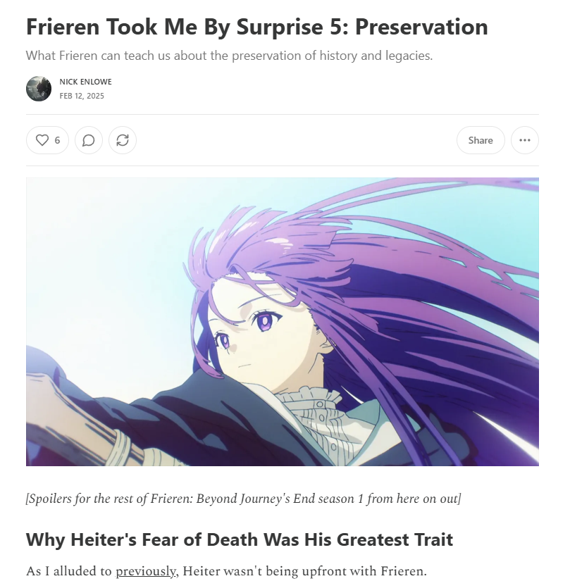 Nick Enlowe's Substack: Frieren Took Me By Surprise 5: Preservation