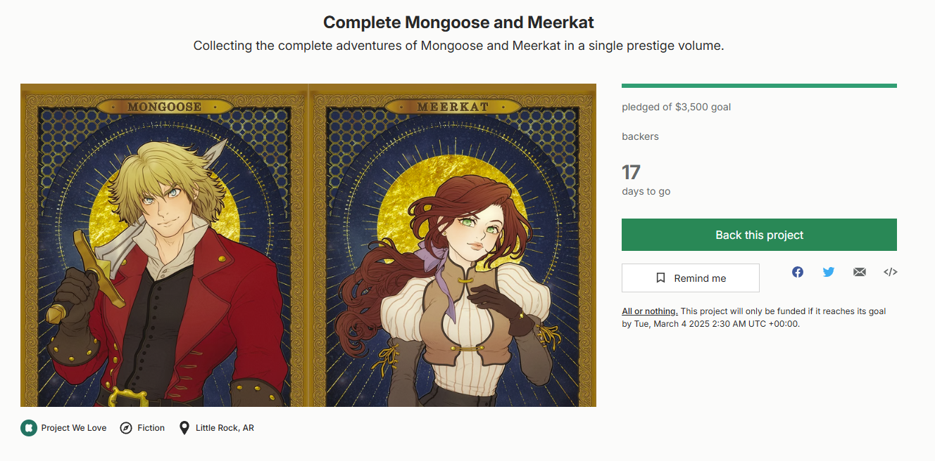 I previously supported a Kickstarter for three volumes of Mongoose and Meerkat. This is more of the same, but with fancier editions and lots of extras.