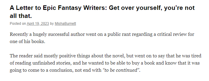 More from Cirsova on why self-contained works offer a better experience to readers than long series.