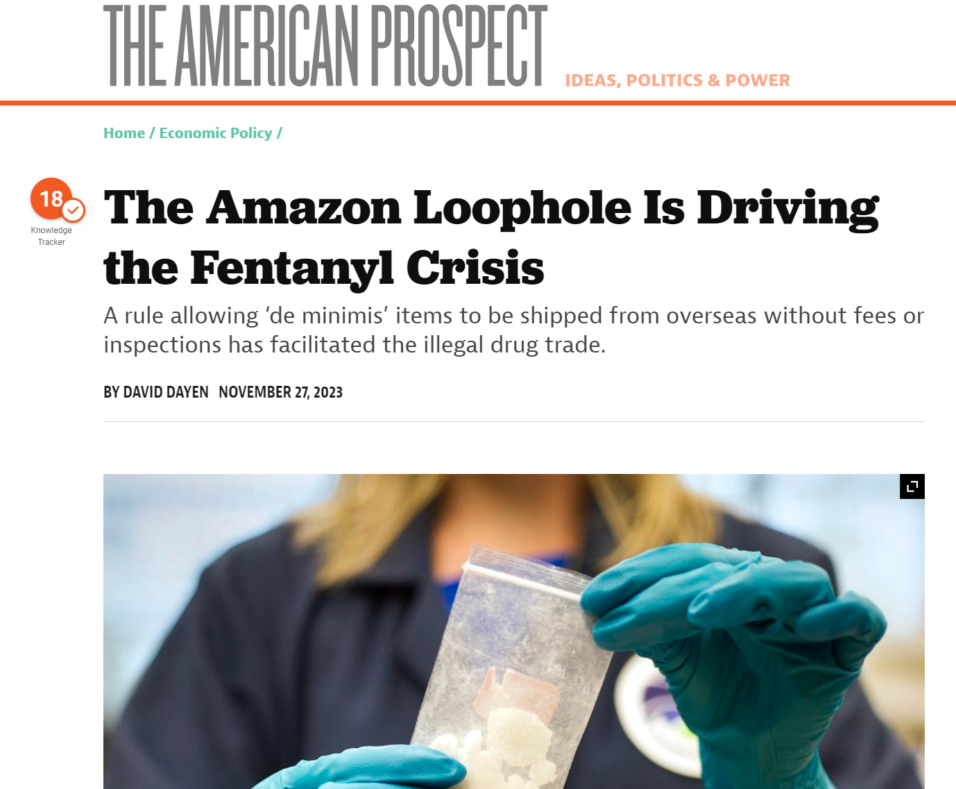 The American Prospect: The Amazon Loophole is Driving the Fentanyl Crisis